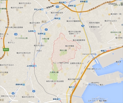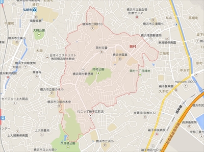 Google mapで調べた磯子区岡村の地図(Google mapより)