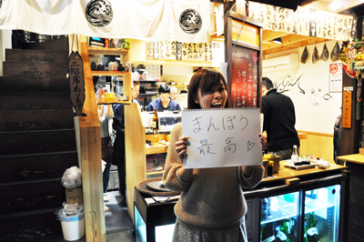 女性客でも安心して飲める店まんぼう。ここで女性客の方にお話を伺う。