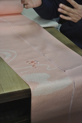 「ご自分がお召しになっていた着物を娘さんやお嫁さんにっていうときも、サイズが違うでしょう? 洗張りをして反物に戻して、差し上げる方のサイズに合わせて仕立て直すことができるんです。地味な八掛(裾回し)や裏地の色を変えれば、お召しになる方の年代も広がりますしね」とご主人。