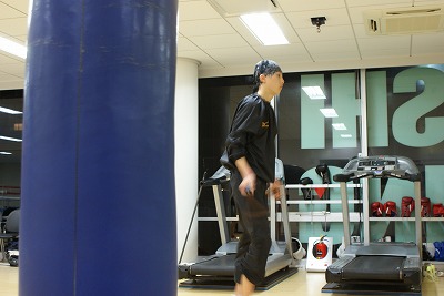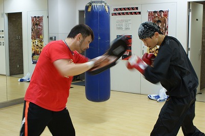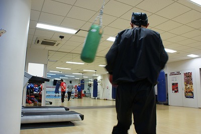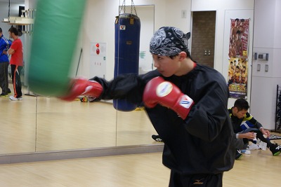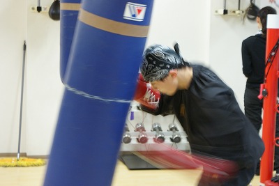 一回り小さいサンドバックでも練習を行う