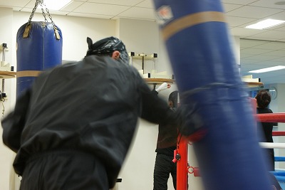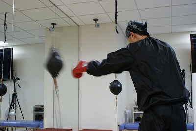 サンドバックの練習風景。カメラでは捉えきれないパンチスピード