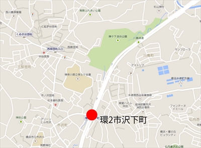 近くには陣ケ下渓谷公園。赤丸のあたりが市沢下町交差点