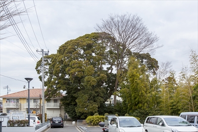 測った時期が違うのか、横浜市指定天然記念物のプレートには、胸高周囲(人の胸の位置に当たる高さの幹周囲)6.25メートル。神奈川の名木100選では胸高周囲5.7メートルとなっているが、とにかく太い。樹齢は840年、樹高は20メートルである。