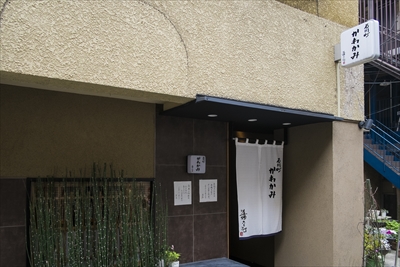 石川町の裏通りに、道場六三郎のサインが入った暖簾を出している「かわかみ」という店はどんな店でどんな料理が出るのかが気になります。/石川町にあるSHIMOMURAがキニナル(bjさん/619さん)