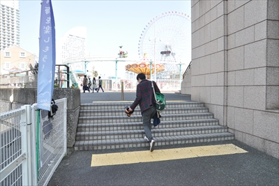 日本丸を過ぎて芝生を下り、左手に見える通路の下をくぐると