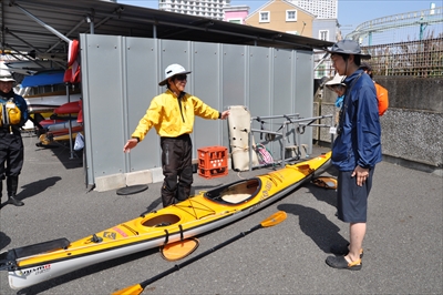 シーカヤックは西表島みたいなところでやるものとばかり思っていたが、こんなところでも体験できるんだな、と思いながら「すみません、今日お世話になるはまれぽです」と声をかけると、日本丸メモリアルパークの伊藤さんが対応してくださった。