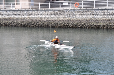 意のままにカヤックを操る様子を見ていると、まさに軽々と乗りこなしているように見えた。いきなりこうは行くまいが、しかしとても楽しそうだ。