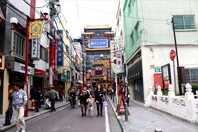 で、やってきた横浜大世界が見える通り