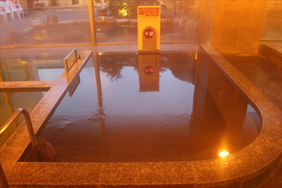 漢薬草をブレンドしている薬湯だ。健康増進と美容に効果があるそうだが、肌の弱い方はおやめくださいとのことだった。こちらは41度と日替わり湯よりも温度が高め。