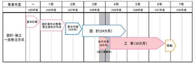 スケジュールについては2015年6月に基本理念を満たす設計ができる事業者を対象に、入札公告を行う。設計・施工を一括で発注する。この際に設計費・建設費の上限を提示する必要があるため、予算および債務負担については5月の横浜市会定例会の議決を経て決まる見込み。