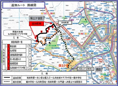 和田町駅から出る22系統「仏向原坂(ぶっこうはらざか)経由保土ケ谷駅西口行き」のバスは、平日午前9時28分発、午前11時発(土曜・休日午前10時32分発、午後0時9分発)の2本となる。