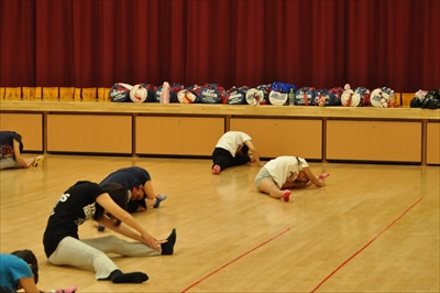 柔軟の段階で全身から汗が噴き出してくる。日頃の運動不足をこういうところで実感してしまう。しかし怪我のないように、柔軟はとても重要なポイントだ。
