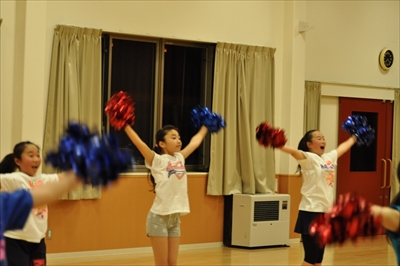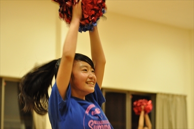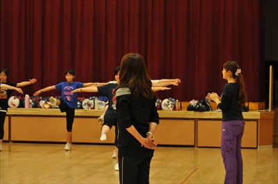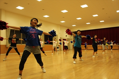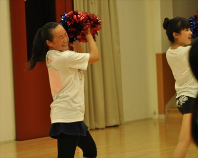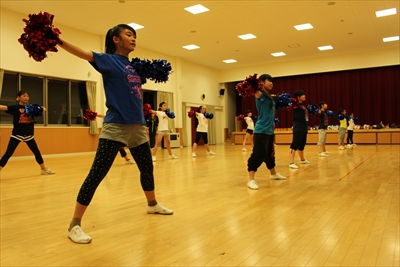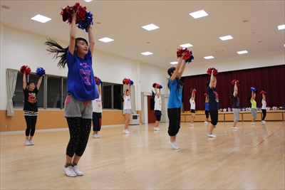 ここからはポンポンを使って、マリノスの曲に合わせた踊りの練習に入る