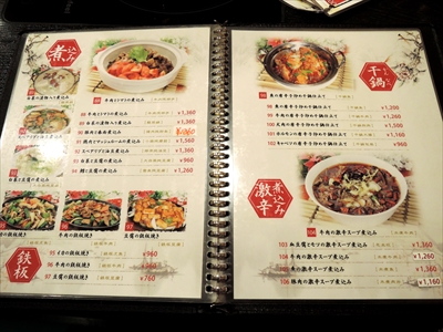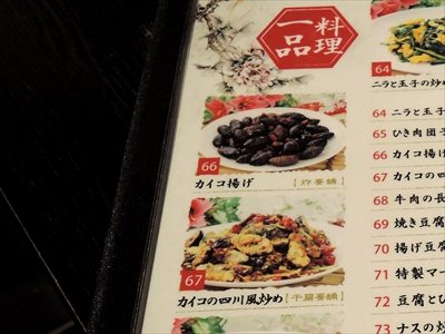 スタンダードな中華メニューだけではなく「犬肉の唐辛子炒め」など種類が豊富