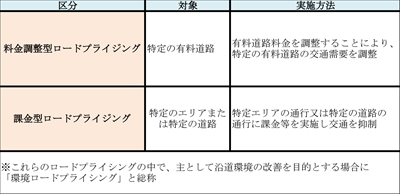 特定の地域に進入、または通行する車から料金を徴収することを「ロードプライシング(Road Pricing)」という。道路混雑の激しい地域の自動車交通量を抑制し、交通渋滞や大気環境の改善を図ることを目的としている。