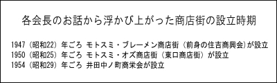 このように、それぞれの商店街は別の時期に設立しているようだ