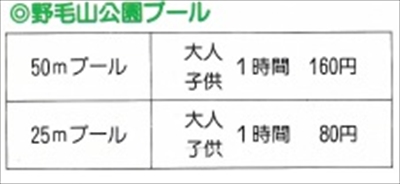 時期は前後してしまうのだが、1987(昭和62)年の野毛山公園のパンフレットの中で、プールの利用料金が記載されている部分があった。