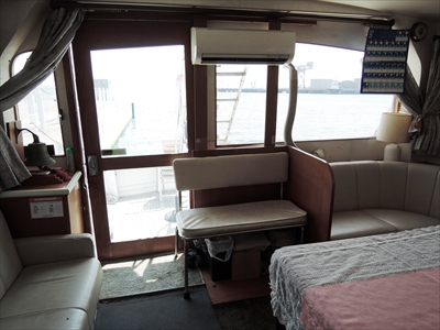 船室内にはソファーやテーブルも揃い、ゆっくりくつろぐことができる