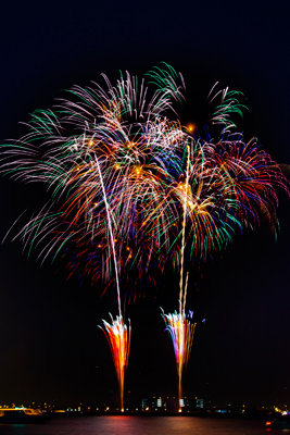 新しい趣向の花火や夜空いっぱいに広がるスターマインが1時間に6000発打ち上げられ、これぞ花火大会という内容でした!