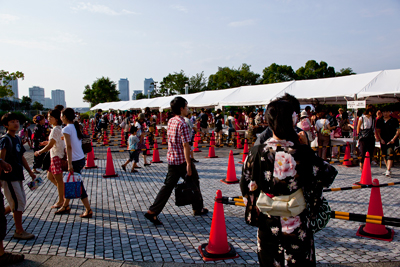 さて、夕方6時近くともなると臨港パークの中は、もうかなり人で埋まっている。