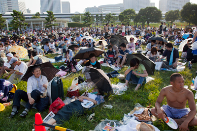 持ち込んだレジャーシートを敷いている姿がチラホラあったけど、日中陽射しに灼かれた石畳はハンパなく熱くて、ちゃんとしたシートを敷きたくなる気持ちはすごくわかる。