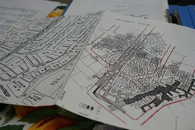 「赤い箇所が道路で、その間には住宅が建っています。画像の灰色に塗られた部分が全て地下坑道ですが、浅いところ(画像の濃い色の部分)を中心に埋め戻しが行われました」