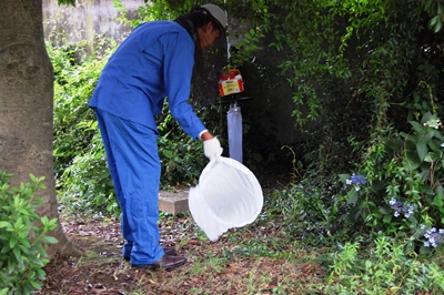 また、山下公園ではCDCライトトラップ法に加え、調査員が8分間虫取り網を使って蚊を直接採取する「人囮(ひとおとり)法」も併せて実施する。