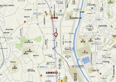 新羽駅と北新横浜のちょうど中間あたりが目的地(Yahoo!地図より)