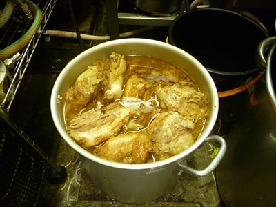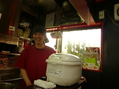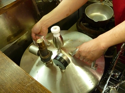 7.5畳の店内、省スペースのため圧力寸胴を使用