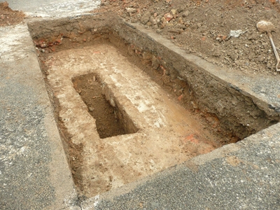 新市庁舎建設予定地から見つかった建物の基礎(提供:横浜市)