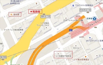 「和泉屋」があるのは、「愛知屋」から20メートルほど阪東橋駅に向かったあたり。
