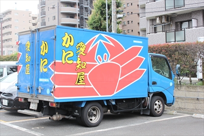 近くの駐車場にあった車にも、立派な「かに」のイラストが!