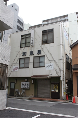 「和泉屋」の全景。正面に小さくカニとフグのイラストがある