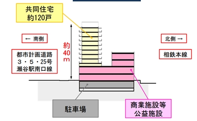 今後は2017年度に着工し、2018年度末の工事完了を目指す。総工費は現段階の概算で約120億円。鉄筋コンクリート造で地上10階・地下1階。相鉄本線の線路側(北側)に商業・公益施設、道路側(南側)に約120戸の共同住宅になる見込み。