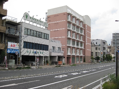 ピンクの建物が横浜こども専門学校。スナックやパブの看板は見当たらない