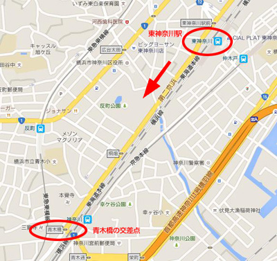 キニナル投稿に書いてあった通りに、東神奈川駅西口を出て青木橋方向に歩いていった。
