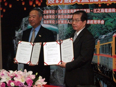 観光提携協定の提携式(2013<平成25>年4月・台北)提供:江ノ島電鉄株式会社