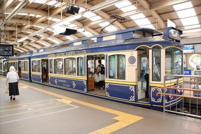 1997年に開通95周年を記念して造られた車両、車内は木目を基調とした重厚な雰囲気
