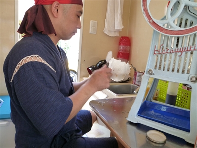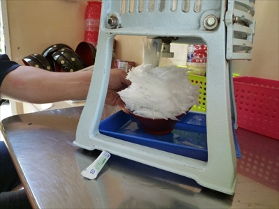 手動のかき氷器から、氷の削れる心地良い音が聞こえる