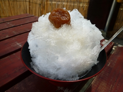 梅干し2個とハチミツ、それに砂糖。このかき氷はそれだけの味付けでできあがっている。なんとなくは想像できるけど、実際はどんな味なのだろう。