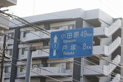 国道1号線に出たら、保土ヶ谷橋までひたすら道なりに進んでいく。すると案内標識に戸塚の文字を発見。まだまだ10km近くある・・・。