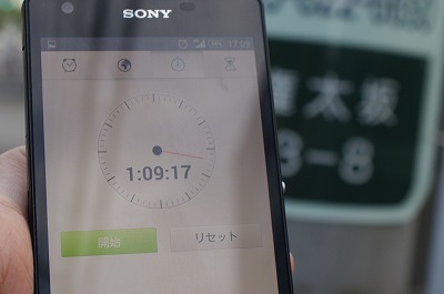 そして権太坂を上り切って、少し行った「権太坂3-8」の住所がかけられた電柱付近で残り6kmとなり、およその中間地点となった。ここまでのタイムは1時間9分17秒である。予想所要時間が2時間38分であるので、かなりいいペースで来ているのではないだろうか。なにごとも早くイっちゃうのが筆者なのである。