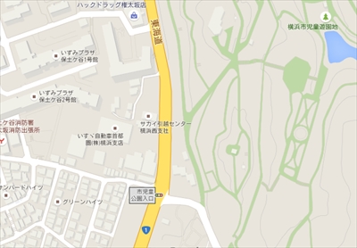 サカイ引越センター横浜西支社を少し過ぎた辺りが中間地点