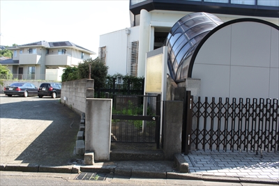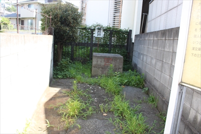 旧湘南信用金庫港南支店の横。門扉の奥、写真のほぼ中央にあるのが「鰻井戸」