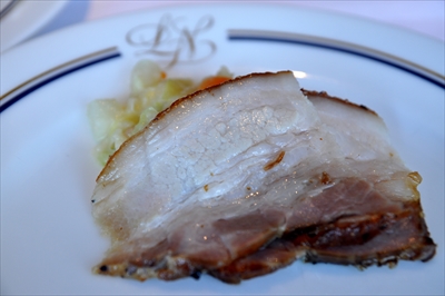 「奥入瀬ガーリックポーク」の作り方は、豚肉を1~2日間塩漬けにした後、コンフィ(たっぷりの油の中で、低温の油で時間をかけて煮ること)し、さらに1日寝かせたあとに、当日焼き色を付けてパリッと焼いた状態で提供される。手間と時間がかかっているのだ。