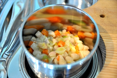 奥入瀬ガーリックポークの付け合せは「白インゲン豆の煮込み」