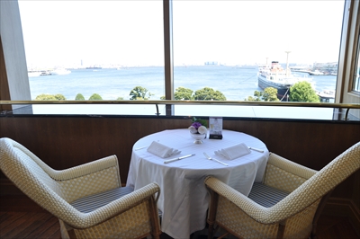 レストランは5階にあるため、高層階の眺めとは異なる。目の前に横浜港が広がっていて、ちょうど目線の高さに海が広がっている感じだ。