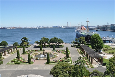 店内を歩いていると「まるで船に乗っているみたい」と思わず言ってしまうほど海が近く、山下公園の氷川丸が目の前に見える。