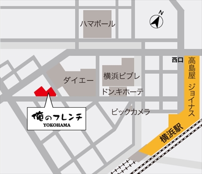 「俺のフレンチ YOKOHAMA」は、横浜駅西口から5分ほど、2年前まで東急ハンズがあったあたりらしいと目星をつけて歩いていくと・・・