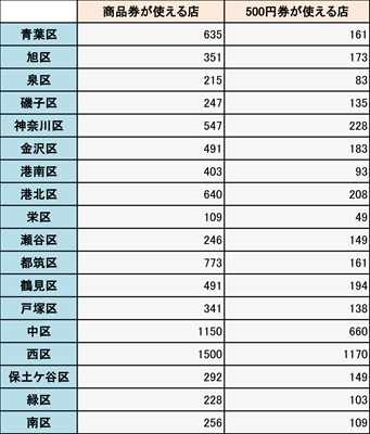 利用できる店舗は横浜市内のショッピングセンターやモールを含めて全部で8915店舗。そのうち、市内の9割以上の商店街が参加。利用できる店舗は4146店となった(店舗数は2015〈平成27〉年8月6日時点)。